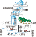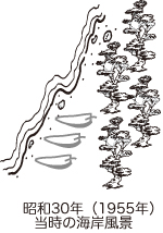 すでに男里川物語(その2)でお伝えしましたが、かつての男里川河口の両サイド(北側は泉南市、南側は阪南市)の海岸線は防風林としての緑の松林が連綿として続いており、波打ち際に向かって真白い砂浜がなだらかな斜面を描いていました。