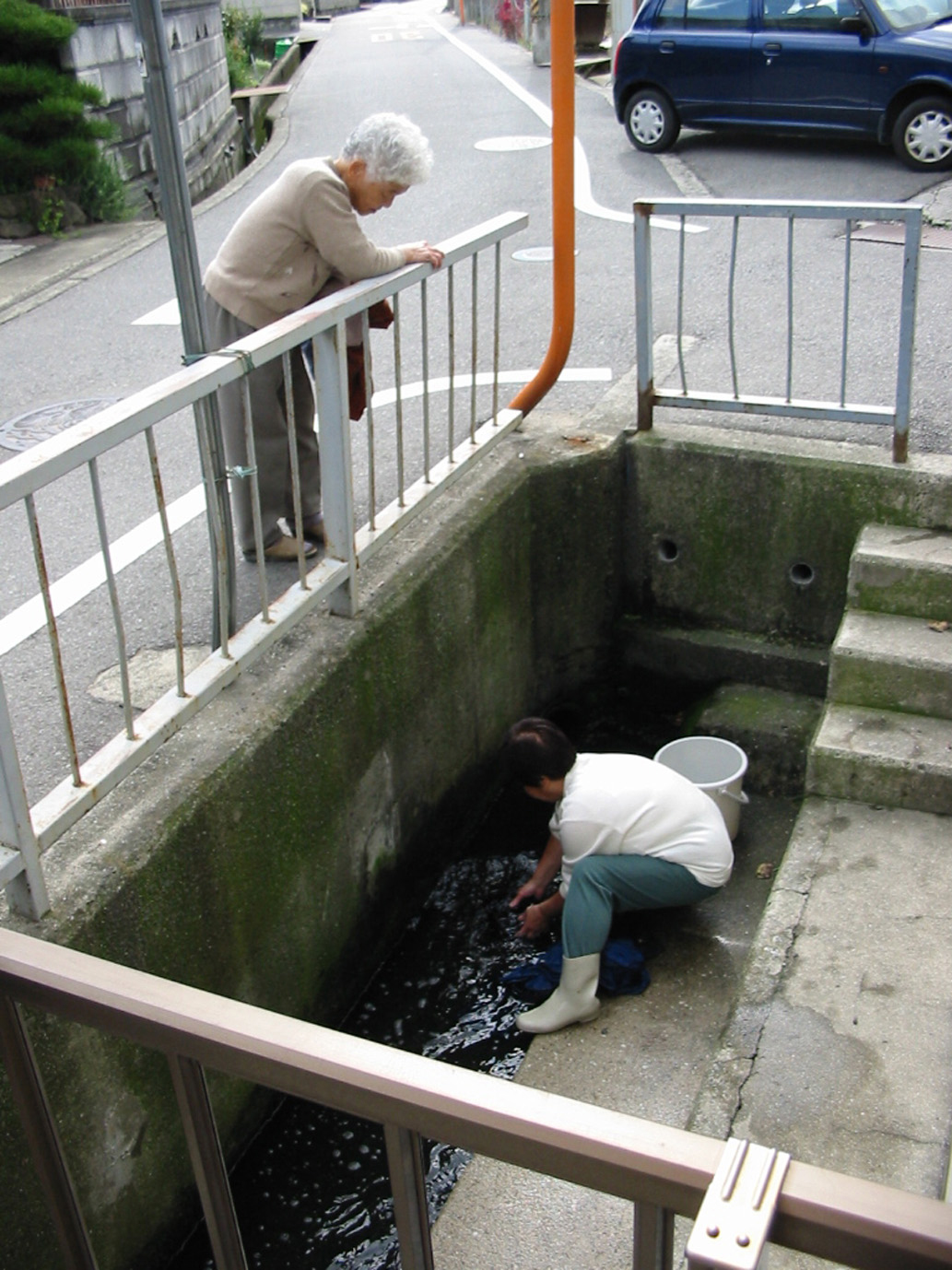 前号までに "ヌキズ"という地下水を地上に汲み上げ農業用水として利用する方法を考えついたすばらしい農民の智恵とその施設について勉強しましたが、未だ西洋からのすぐれた土木技術など日本に伝わってきていない時代に、どうやってヌキズのようなトンネル工事が出来たのかということにふれておきます。 ヌキズが最初に出来たのは、1868年(明治初年)のことでした。その工事の方法は、江戸時代のやり方そのままで、まず夜の間に提灯を灯して明かりの高い低いをスケッチして、なだらかな傾斜にトンネルをつくり、そこに当時この地方で盛んに生産されていた瓦の管を敷きつめ、水の通るトンネルに仕上げました。 とりわけ根来紋次郎さんの作った、現在も阪南市鳥取中(石碑の近く)に残っているヌキズは写真でも確かなように現在も近所の人の生活の中で利用され役立っています。 100年も前の設備が壊れることなく大切に使われているということはすばらしいことで、阪南市の誇る産業記念物として永く保存しておきたいものです。 (おかあさんチョット2005年2月号掲載) |