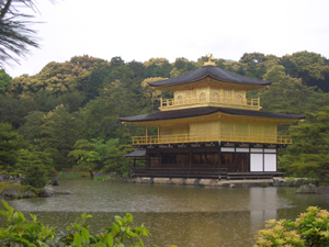 | 小雨降りしきる大人の(しっとりした)京都を堪能してきました。 おかチョ旅倶楽部20回目ですが、岸和田観光さんに3台しかないという バラバスに揺られ、まず最初に到着したのは、金閣寺。 修学旅行生やら、遠足らしき小中学生やら、外国人やらなにやらものすごい人・人・人。 小学校の遠足のガイドさんが、すぐ後ろでお話されているのが聞こえたのですが、 「こんなに人が多いのは久しぶりです」…なるほど。ガイドさんもびっくりの人の多さのようでした。 人と傘にもまれながら見る雨の金閣寺はまた一興。 | ||