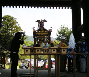 8日に天皇陛下が来られるとかで、式典の準備に追われる会場内を抜けて大極殿の中へ。