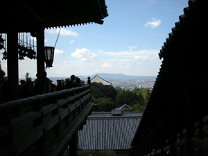 ところです。急な階段を上りきった境内からは奈良の町並みを眼下に一望でき、よく晴れた青空に