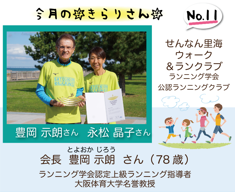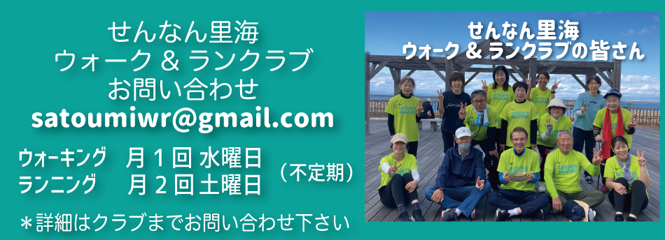 永松 はい♪先生のご指導の下、それぞれのペースに合わせたメニューで各々活動を楽しまれています♪ 豊岡 せんなん里海公園は芝生や土の道が多く、ウォーキングやランニングをするには最適な環境なんです♪また、海が見 える自然豊かな公園で心身ともに元気になれます♪ウォーキングメンバーには70歳以上の方も沢山いて皆さん元気に 活動されています。 |