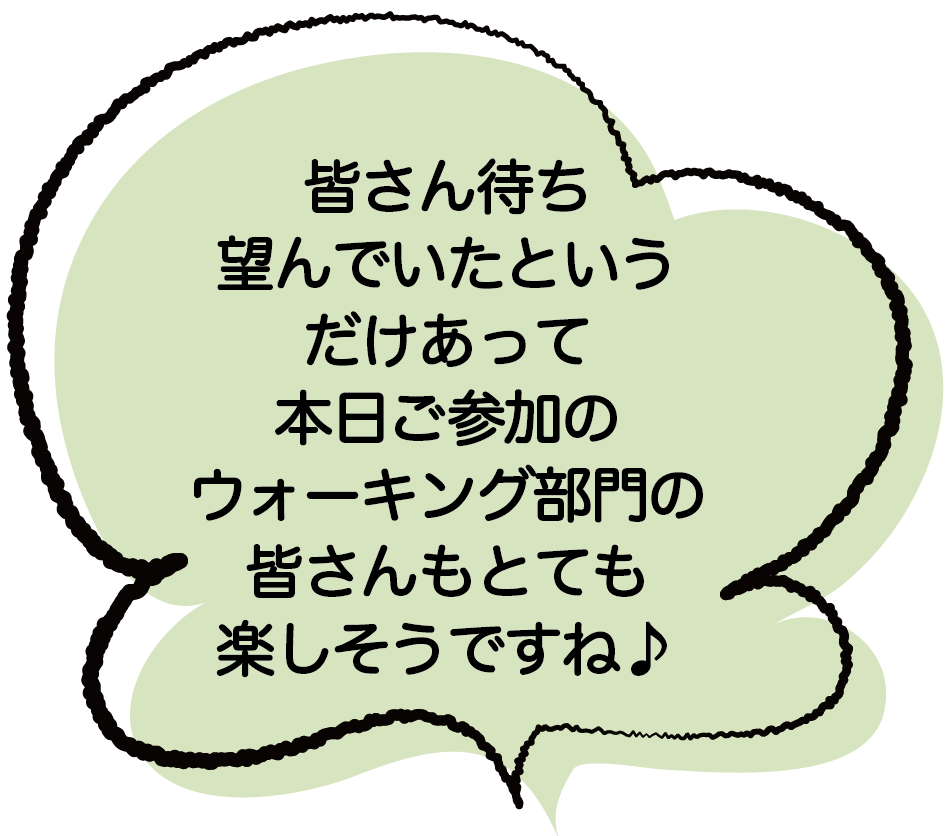 永松 はい♪先生のご指導の下、それぞれのペースに合わせたメニューで各々活動を楽しまれています♪ 豊岡 せんなん里海公園は芝生や土の道が多く、ウォーキングやランニングをするには最適な環境なんです♪また、海が見 える自然豊かな公園で心身ともに元気になれます♪ウォーキングメンバーには70歳以上の方も沢山いて皆さん元気に 活動されています。 |