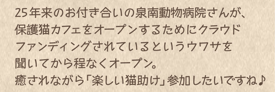 | 病院の移転に伴い旧病院をどうするかいろいろ考えた末、残りの人生は動物医療と並行して動物愛護や福祉についても力を注ぎたいと殺処分されてしまう犬猫の保護・譲渡施設設立に至りました。とはいえ頑張りすぎて疲弊してしまった獣医師や保護団体も知っています。そんな時にビジネスとしても成立させながら猫助けを継続している『ネコリパブリック』代表の河瀬麻花さんに出会い彼女の熱い想いに共感し、一緒に活動したいと思いました。 |