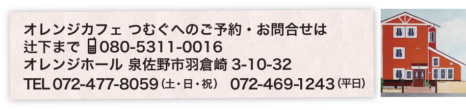泉州つむぐ会の活動のひとつである認知症カフェです。 毎月第2日曜日(10時〜13時)に羽倉崎の多目的ライブハウス オレンジホールで開催。 良質な音楽で認知症の予防・緩和・改善に取り組んでいます。 終末の人生を共に考え、仕事・家庭・健康の悩みなど、医療・介護・終活の専門スタッフが相談に応じます。 どなたでも参加できますのでお茶を楽しみにお気軽にお越しください。 『独りじゃなければ出来る事があります。一緒に語りあいませんか?』 |