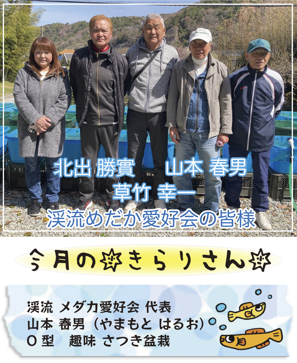 | 生き物を育てる事が好きな私は8年ほど前からメダカの飼育を始めました。卵からふ化し生まれてくるメダカの赤ちゃんは本当に可愛くて「丁寧な飼育と愛情をそそげば元気に育ってくれる」この様子に元気をもらっています♪メダカ飼育の楽しさを自分だけではなく「多くの人に広めたい」という思いから昨年4月に、メダカ好きの友人2名と一緒に「メダカ愛好会」を始めました。友人達はもちろん私と同じ思いで飼育に携わってくれています。儲け度外視(笑)で販売もはじめました。かなり安い値段で皆さんに提供させていただいています。 |